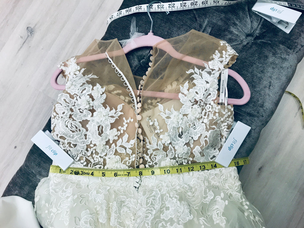 We recommend referring to the gown’s actual measurements for the best fit, as sizing can vary between designers.