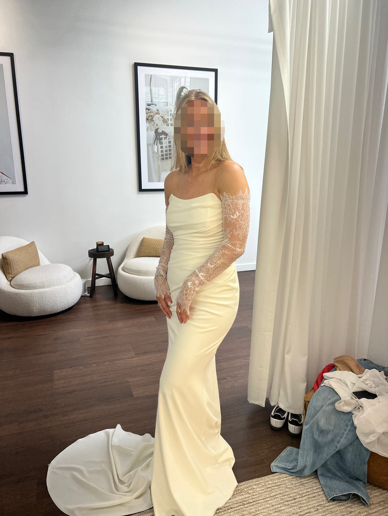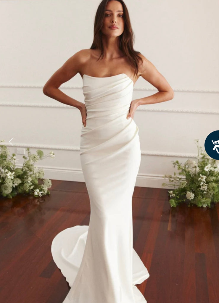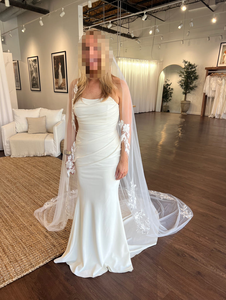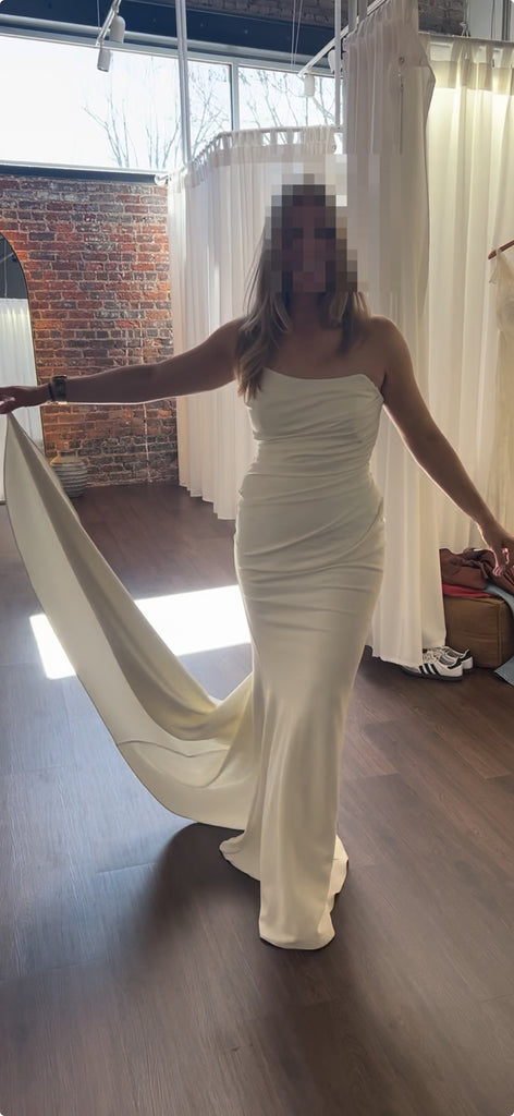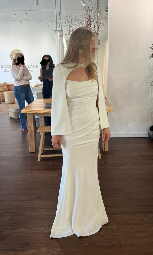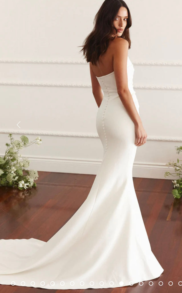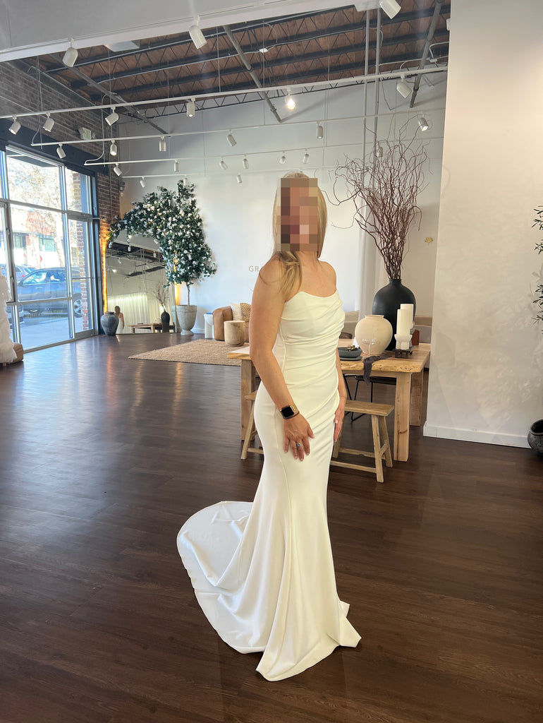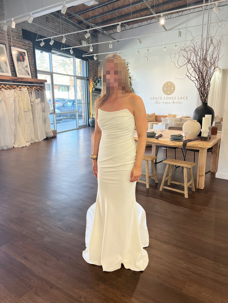 **Phoebe has not been touched with any hands, has not been removed from garment bag or tried on since receiving. I live in a pet-free, smoke-free home. Photos of me in the dress was the sample in store. Dress will be shipped in original packaging.**