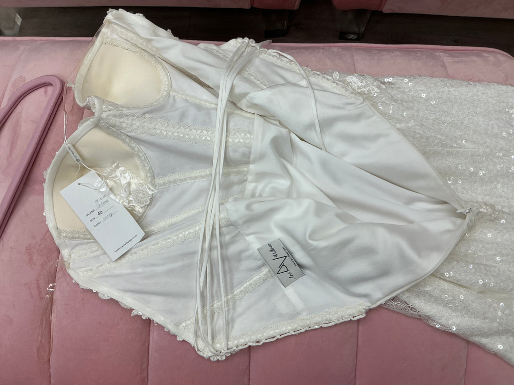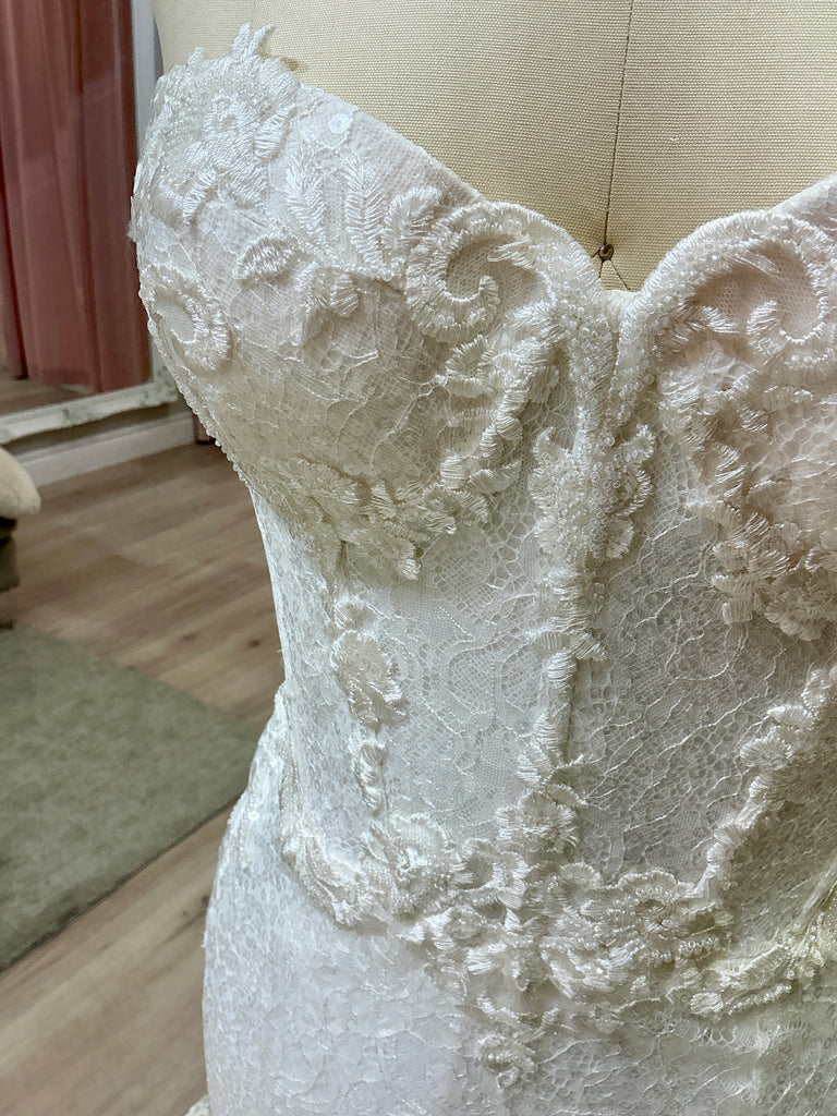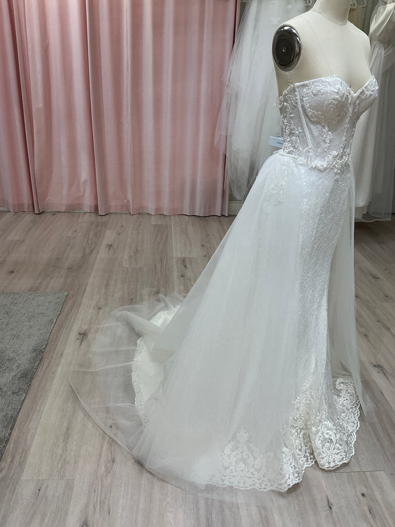 ✨ Discontinued & Rare: This design has been officially discontinued and is no longer available for new orders. That makes this in-stock sample a limited and exclusive opportunity for brides seeking a one-of-a-kind gown with couture-level detail.