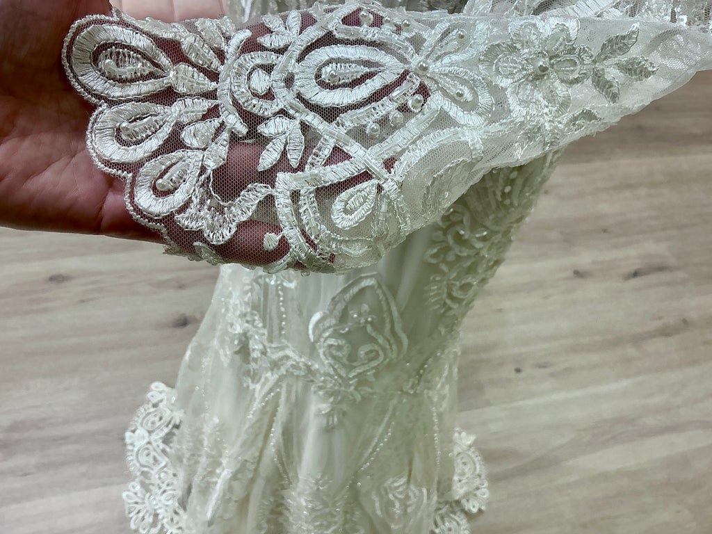 Detachable lace sleeves that give you two looks in one — ideal for transitioning from a graceful ceremony to a lively celebration.