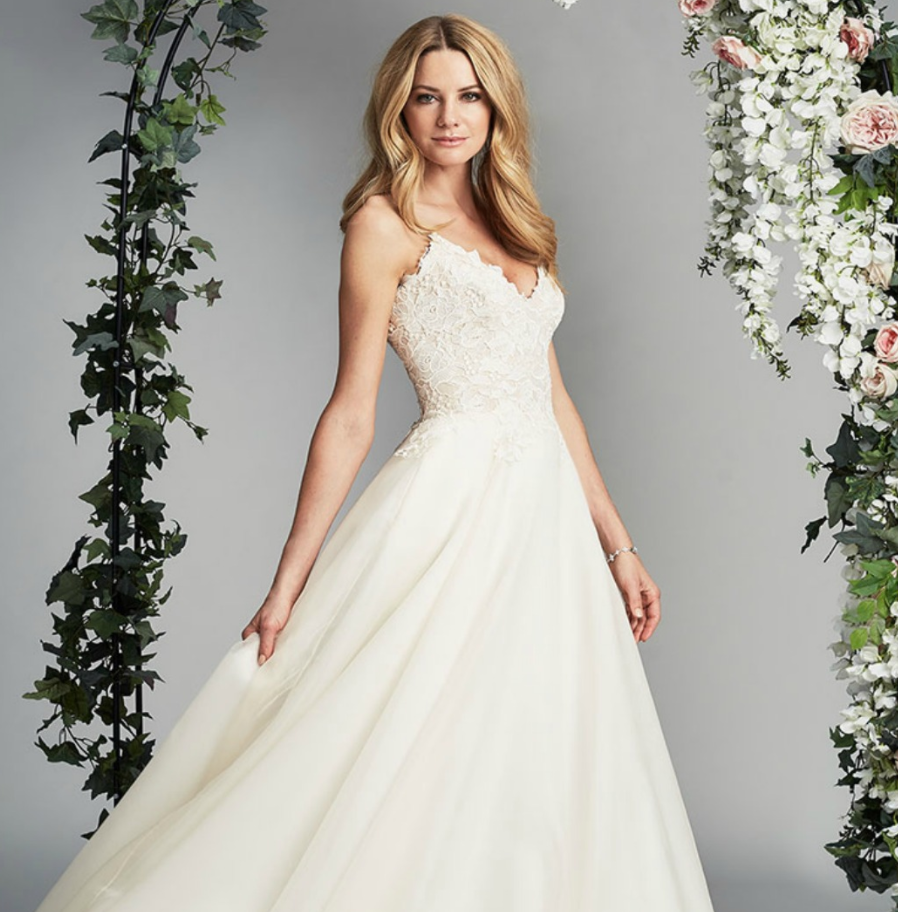 This dress is absolutely amazing! I felt so beautiful on my wedding day. The dress was custom made in London for my measurements, and has a stunning romantic lace bodice, and a flowy silk organza skirt. The materials are very high quality, and the dress was sewn to perfection (even my seamstress who did my alterations commented on the craftsmanship). I bought it at Posh Bridal Store in Minneapolis, MN, and had my alterations done in Des Moines, Iowa. I only wore it once on my wedding day, and it was absolutely perfect. I have a pear shapped body (small waist and wider hips), and this dress really compliemented my figure. I'm sad to see it go, but I can't wait for someone else to feel as special as I did in it.