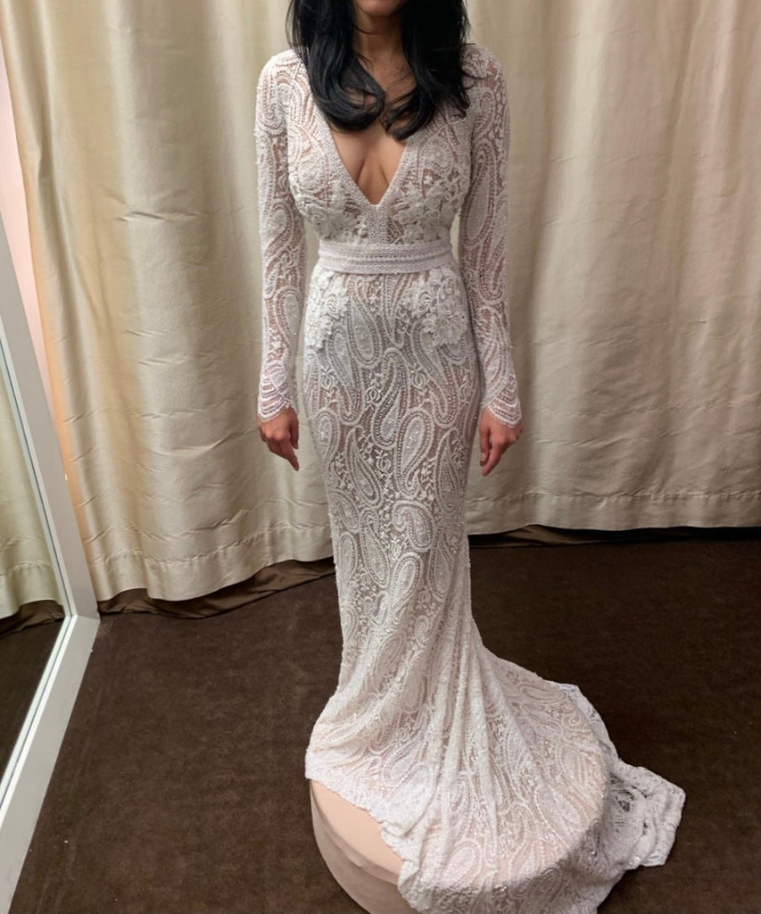 Condition: BRAND NEW. This was ordered in November of 2019 for my wedding in September 2020, which never happened because of COVID, and then my fiance and I called it off. So this is brand new, it has a beautiful nude lining so it's not sheer.