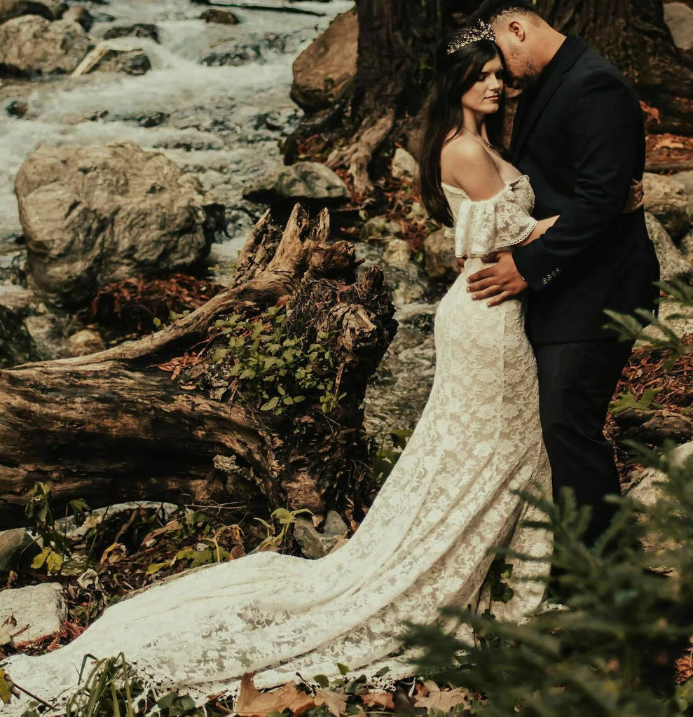 The Callista boho wedding dress features an off-the-shoulder design that will bring your laid-back wedding dreams to life. From top to tail this masterpiece exudes an air of playful elegance that’s quite simply unforgettable.