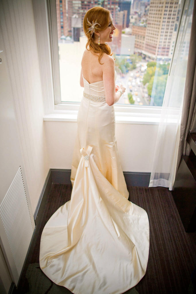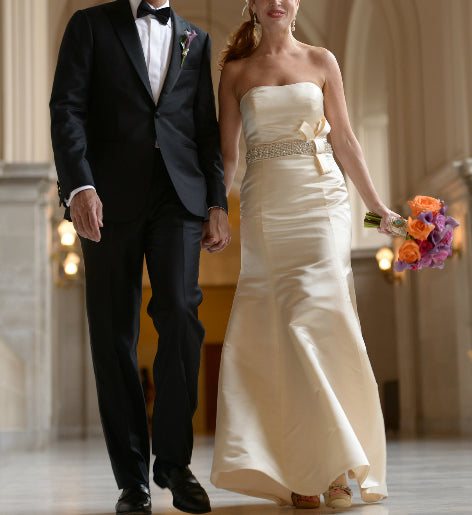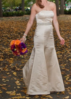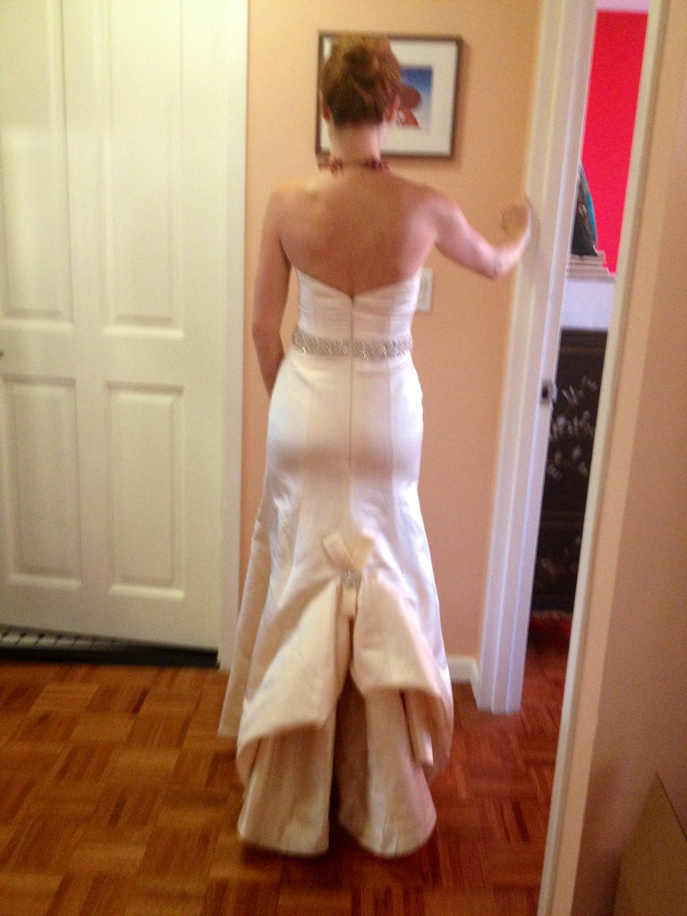I bought this dress as a sample, it had been worn down the runway. Katerina's designs are made-to order, and the quality is of the finest workmanship.