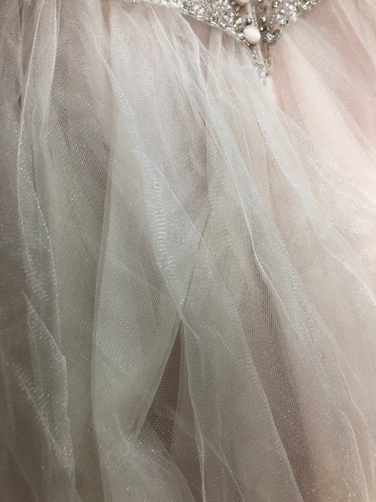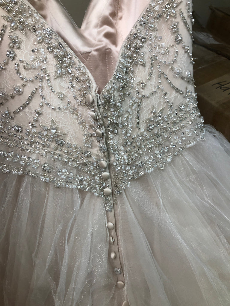Kenneth Winston Blush Lace Organza BLING Ballgown Wedding Dress Bridal size 8 ("regular" size 2 or so)