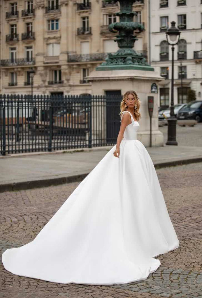 Elegant Satin Ballgown Wedding Dress with Corset Back & Long Train