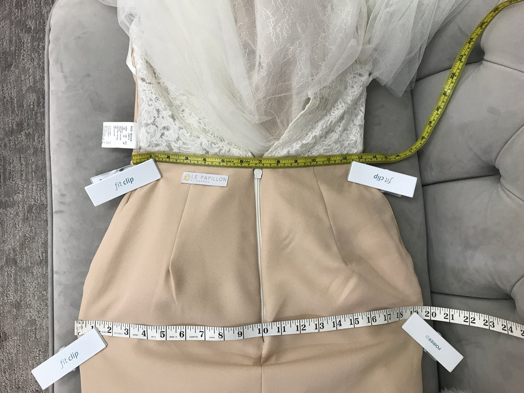 Please refer to the listed measurements rather than standard dress sizing, as sizes can vary between designers.