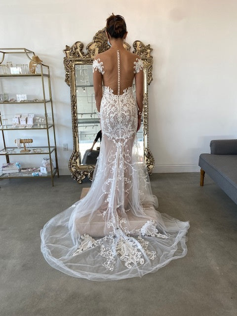 The back, chest, and sleeves are made with a high-quality nude tulle fabric (mesh material) which is also stretchable. The dress is super lightweight, breathable, and extremely comfortable. It has corset ribs in the front which will help keep your shape. The pearl buttons along the back are the perfect touch to this absolutely mesmerizing dress! You can find more pictures of "Venice" style dresses on Nektaria's Instagram page @Nektaria_Official.