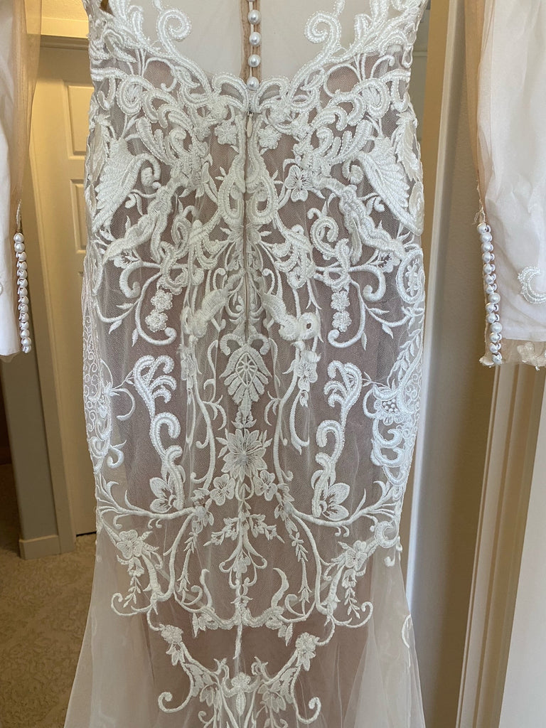 The dress is an Australian Wedding size 8, but will fit a US size 2 or 4. I was closer to a size 2 when I was measured and was closer to a size 4 when I wore the dress in August 2021 and it fit perfectly.