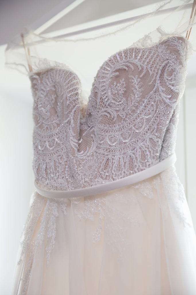 This dress is literally a dream come true. From it's flowy skirt to the beautifully embellished bodice it was the most romantic dress I tried on by far. It was worn for one wedding event in Sep 2016, in Switerland - was perfect for both the intimate church as well as grand ballroom reception.