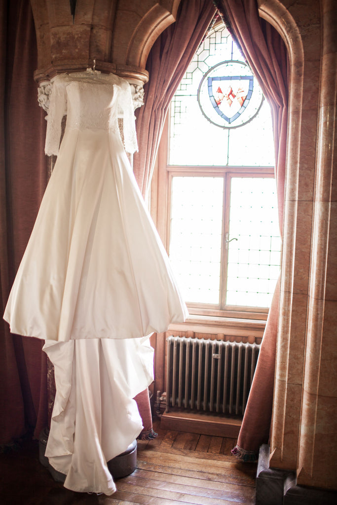 Sadly, a waiter spilled red wine on the floor and it subsequently got onto the train of my dress during the wedding breakfast. The catering firm has therefore had to pay to have the dress completely repaired (re-made with new satin).