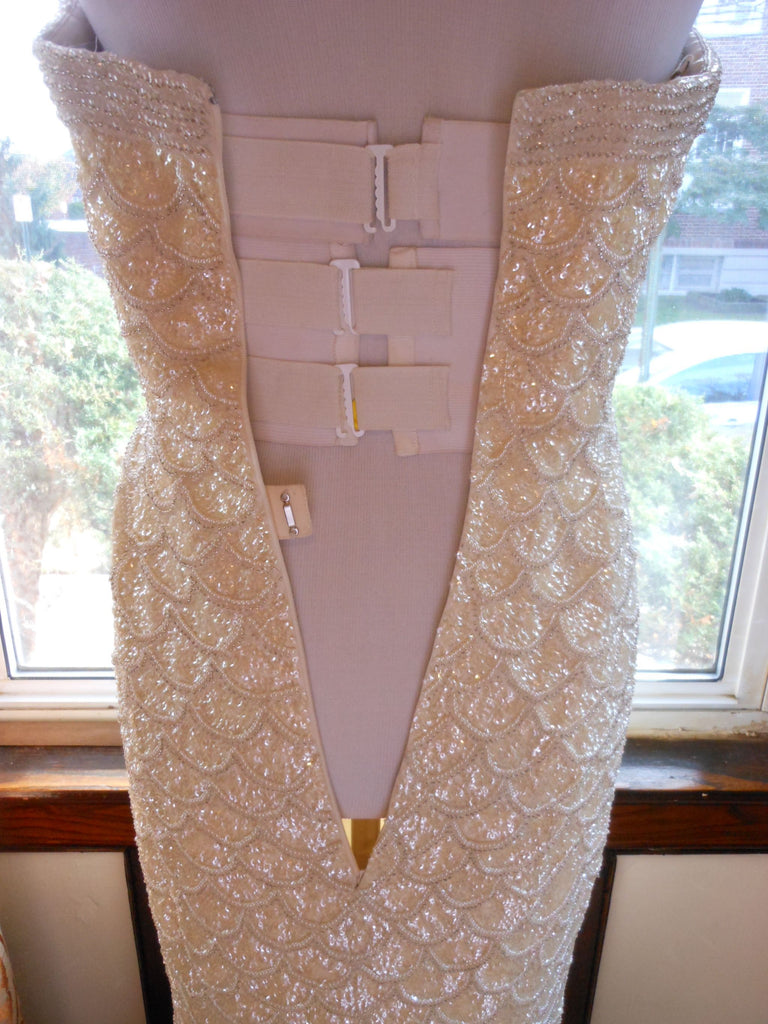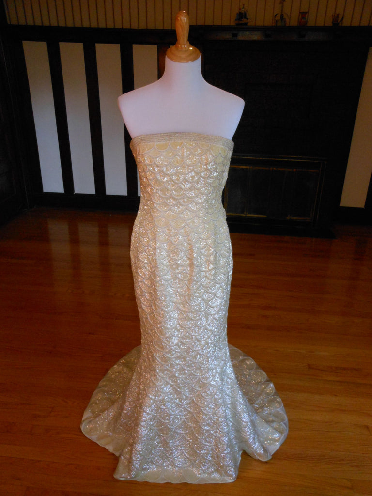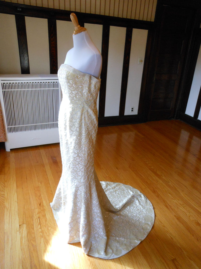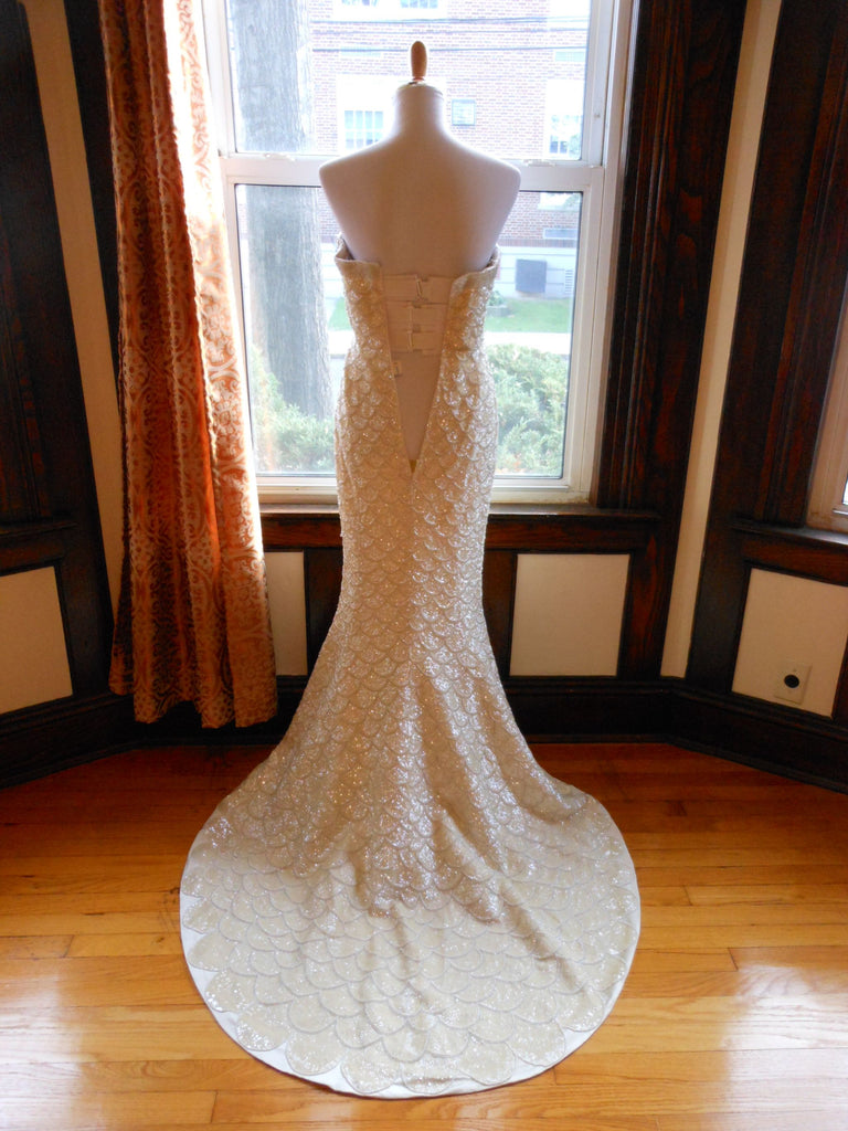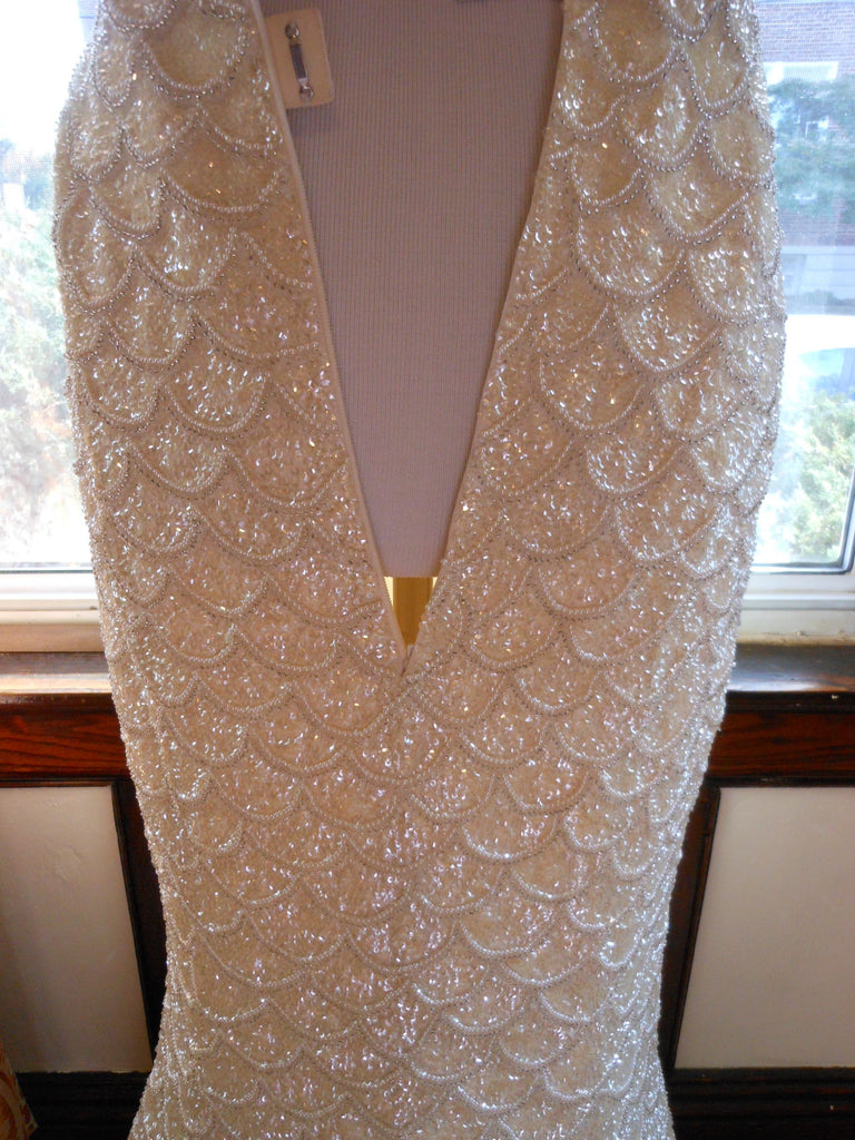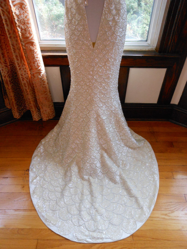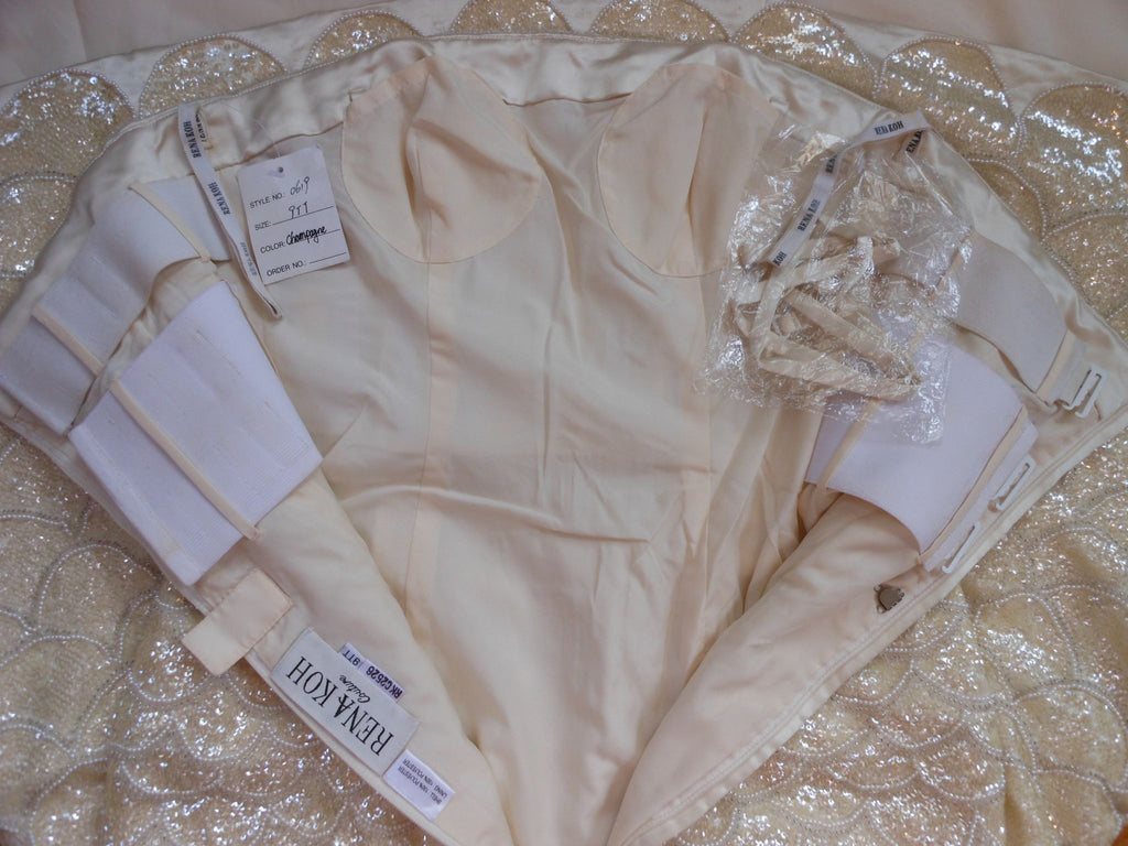 This is an Authentic RENA KOH COUTURE Bridal Wedding Dress Gown. The style number of the dress is RK C2526. This is a stunning classic mermaid dress. It has a gorgeous mermaid style with a fabulous long train. The entire gown is fully covered by exquisite and sparkling beads/sequences from the top neckline to the hem of skirt which were all hand sewn. The bodice also has inner corset to built a perfect shape. It comes with detachable spaghetti straps. This gown will make you look like a true beautiful mermaid. This dress is new in great condition with the original label and tags. It was never worn.