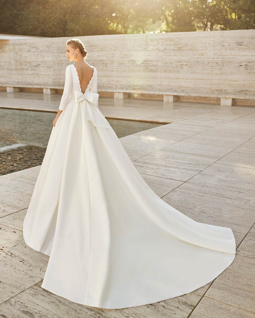 The Emal model is designed by renowned Spanish designer Rosa Clará, celebrated for her expert craftsmanship and use of luxurious fabrics. This particular cut from the Couture collection is soft, graceful, and timeless.