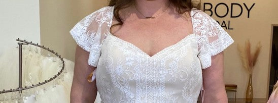 IMPORTANT NOTE about the Sleeves: I am including photos from the designers website as well as photos of me wearing the sample dress in the store (the dress that I am selling has not been worn). The sleeves are slightly different from the designer's website photos compared to what they actually look like, which is why I am including the photos of me wearing the sample dress in the store. The sleeves are more of a "flutter" sleeve in real life, where the designer's website shows them as more form-fitted to the arm. You could certianly have them altered to be form fitted to your arm if you prefer that style better. Please message me if you have any questions regarding this or any other qustions about the dress.