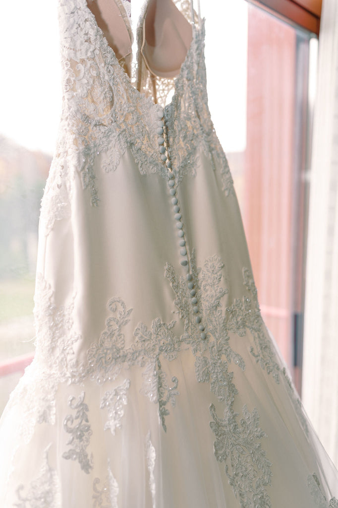 This was only the third dress I tried on and I fell in love with it instantly and then compared every dress I tried on to it. Before I tried this dress on, I was having a hard time deciding which fabric I wanted for my dress- this one has three different ones (lace and tulle on silk zibeline) which makes it super unique and elegant. Every time I look at it, I feel like I find something new I love about it.