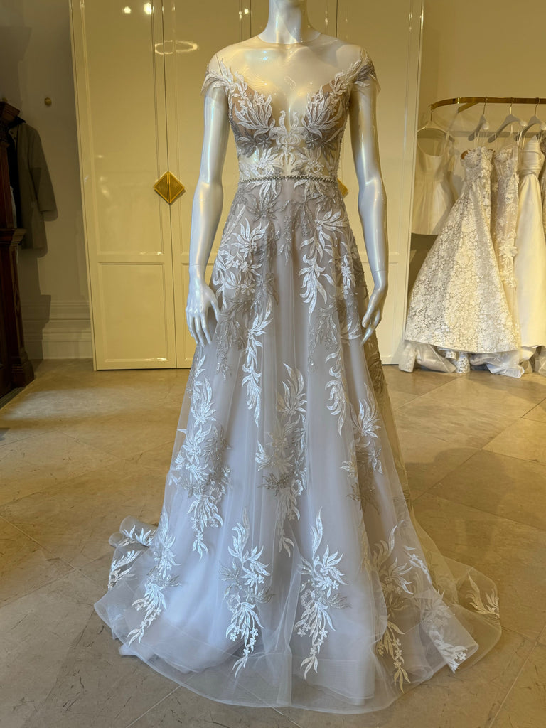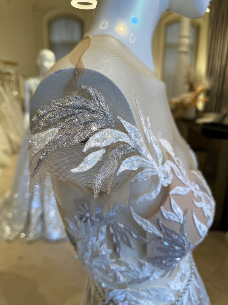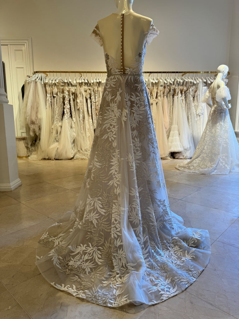 The Daphne gown from the Muse by Berta Barcelona collection is a masterpiece of enchanting elegance and romantic allure. Available in a classic ivory shade, this gown is offered in a sample size 40 and can be ordered in sizes 36 to 44, with custom size options available to ensure the perfect fit for every bride.