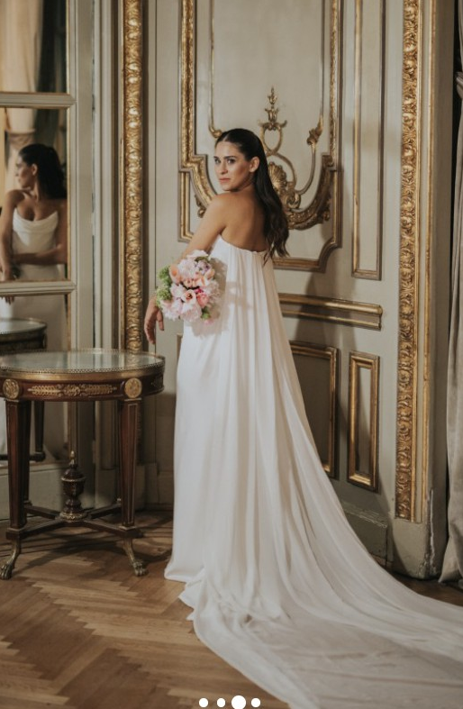 This wedding dress was my DREAM. I hope you can feel how I felt on my wedding day. The most elegant and stunning wedding dress I’ve ever seen. Not only is this dress a WORK OF ART, but it makes the bride look like a work of art. Seriously STUNNING. The dress was comfortable and the corset makes you snatched. The cape on the dress gives it that extra drama, and is also removable, so you can just take it off and party the night away.
