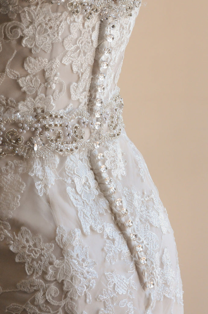 - Back zipper hidden underneath beautiful buttons down the back of the dress.