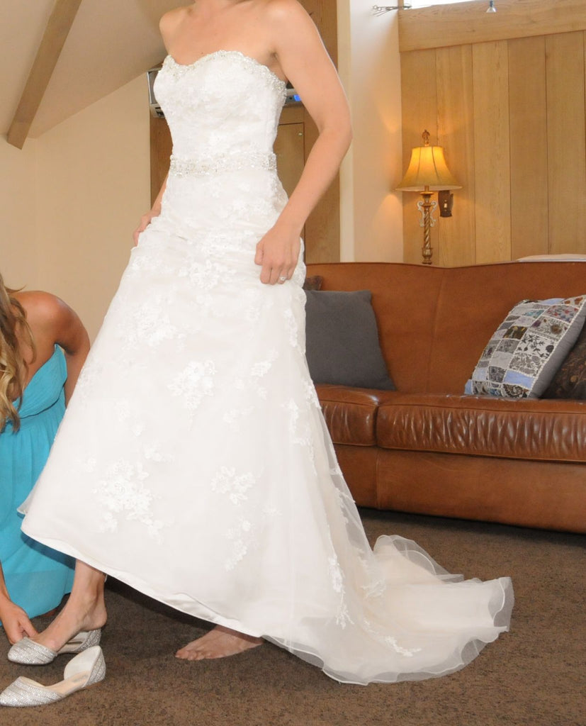 This is my dream wedding dress worn on the happiest day of my life! It was beautiful in an outdoor/garden setting. My husband and I are still happily married ten years later. When visiting my parents I came across the preservation box in one of their closets. I am hoping that someone else will get as much enjoyment out of the dress as I did, rather than having it sit in the box for another few decades. I paid $250 to have it preserved after the wedding and it is truly "like new."