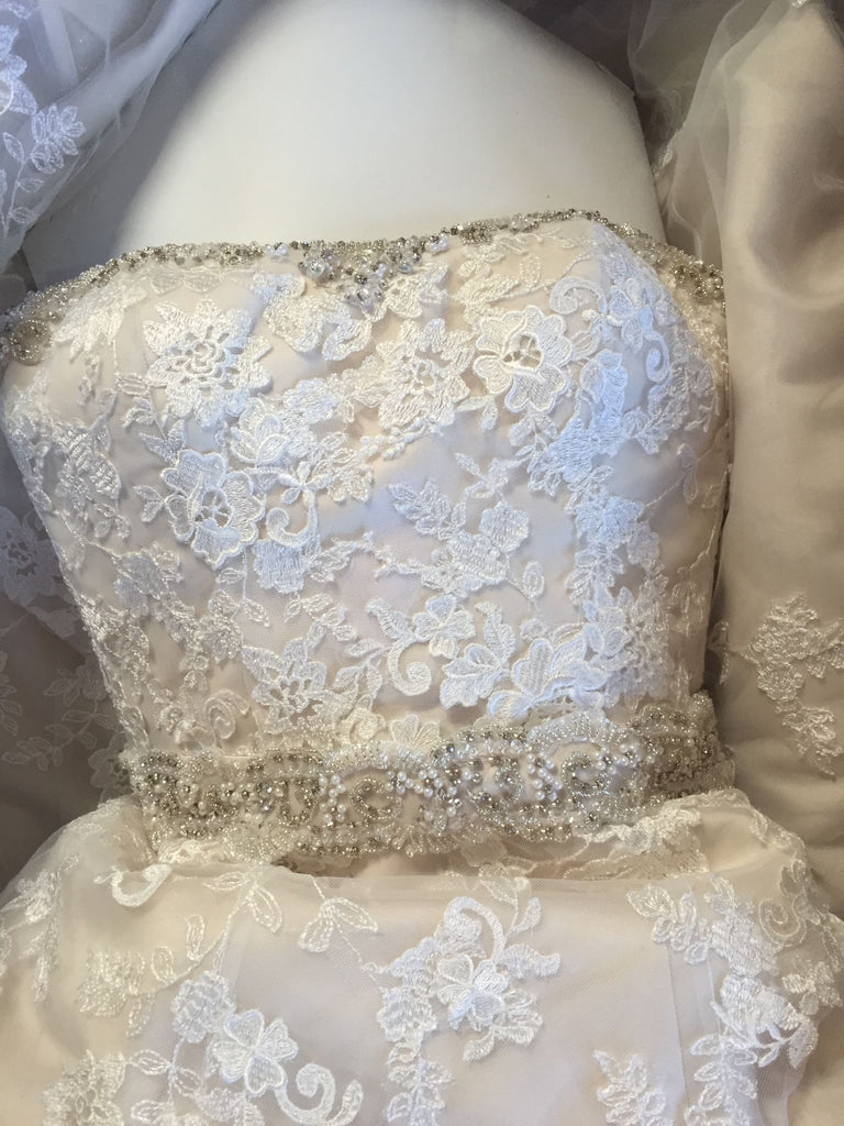 - I liked the beading because it was subtle and didn't stand out too much in real life. It seems to depend on the lighting, which was darker inside than being outside in natural light like it was on my wedding day.