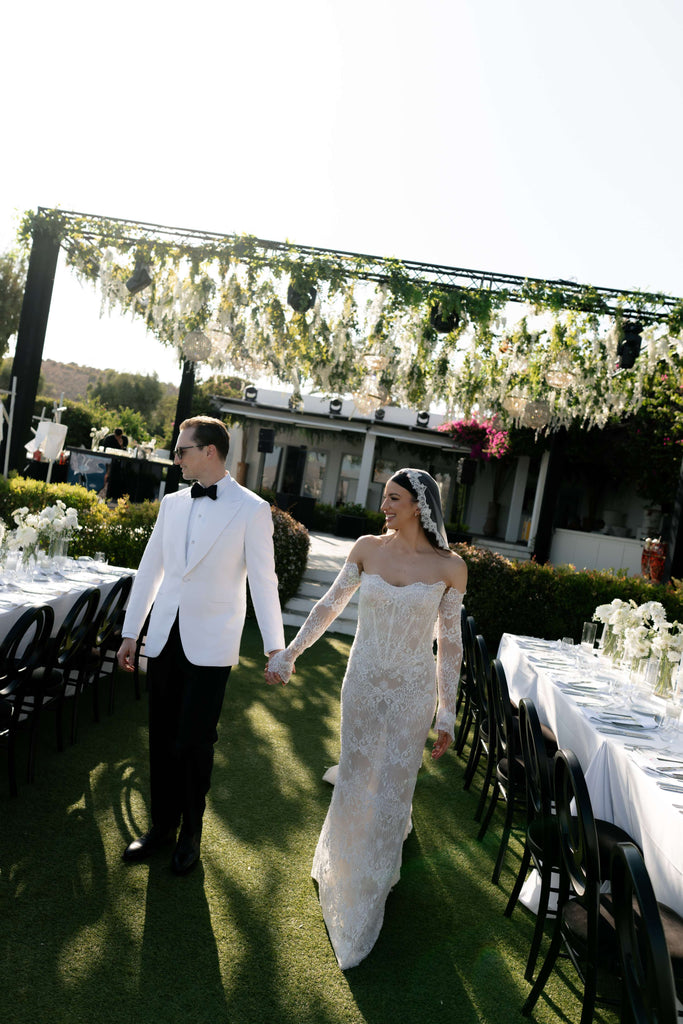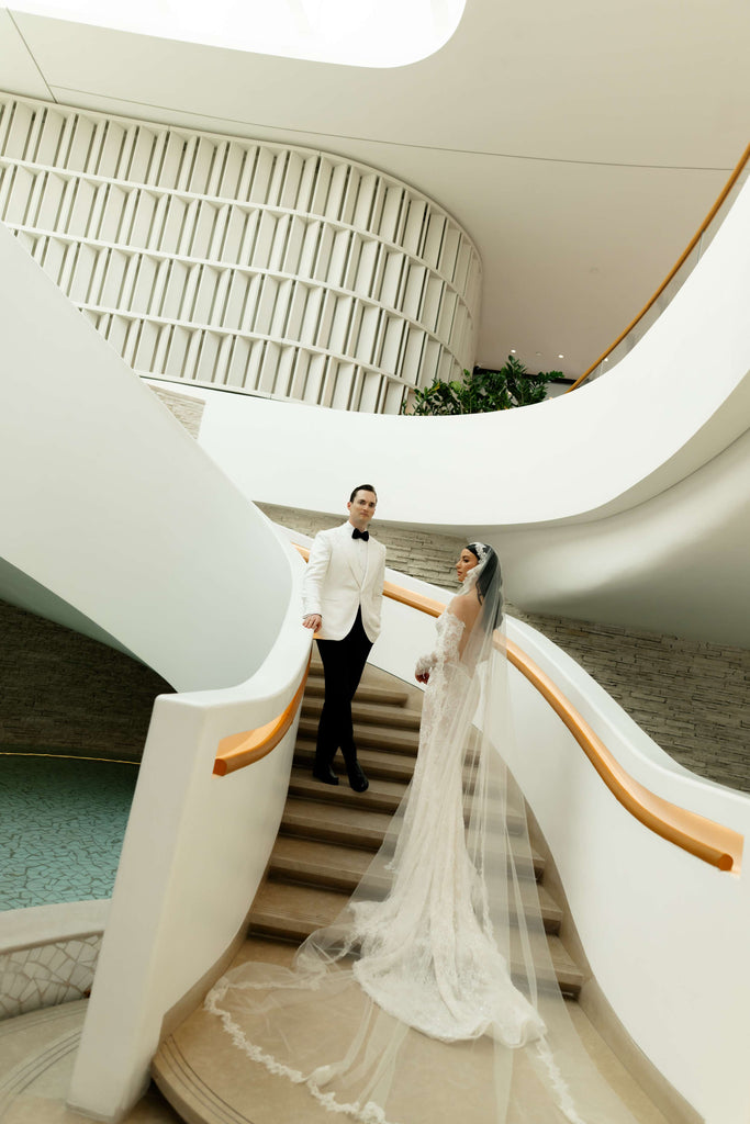 The intricate royal lace pattern and subtle shimmer give the gown a regal yet ethereal quality, making it ideal for brides who want to embody grace, femininity, and quiet glamour. It’s a gown that feels rare — I truly hadn’t seen anyone wear anything quite like it before. Depending on your veil and accessories, it can easily be styled to feel classic and romantic or fashion-forward and editorial.