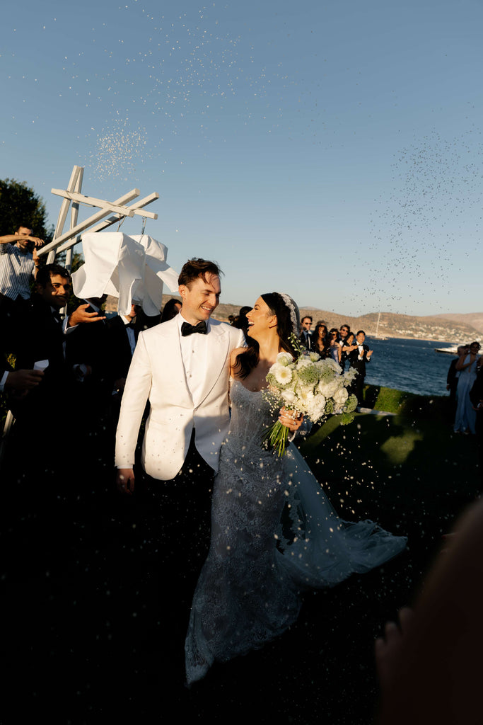 A breathtaking Tom Sebastien couture gown, the "Victoria" is crafted entirely from rich Chantilly French lace and adorned with hand-sewn crystals and pearls that catch the light with every movement. The quality is absolutely immaculate — you can feel the craftsmanship the moment you slip it on. Despite its luxurious detailing, the gown is lightweight, comfortable, and easy to move in, which made it effortless to wear all day and night.