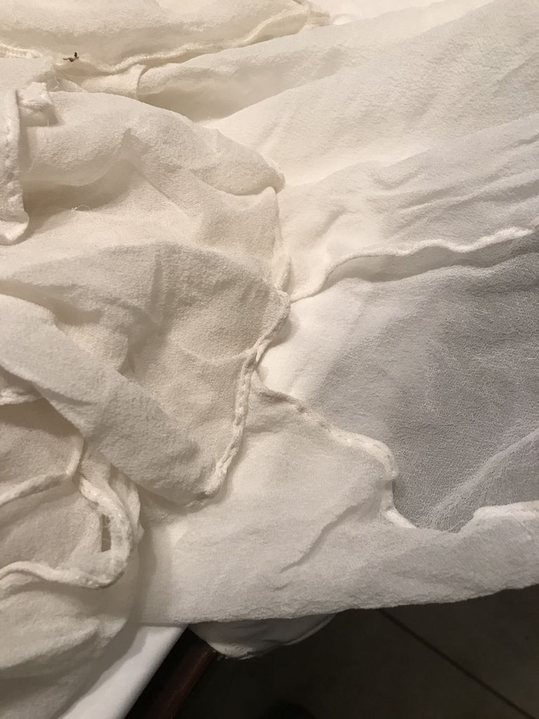 - Made from hand sourced French lace and Italian silk
