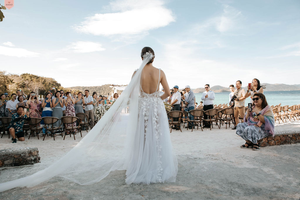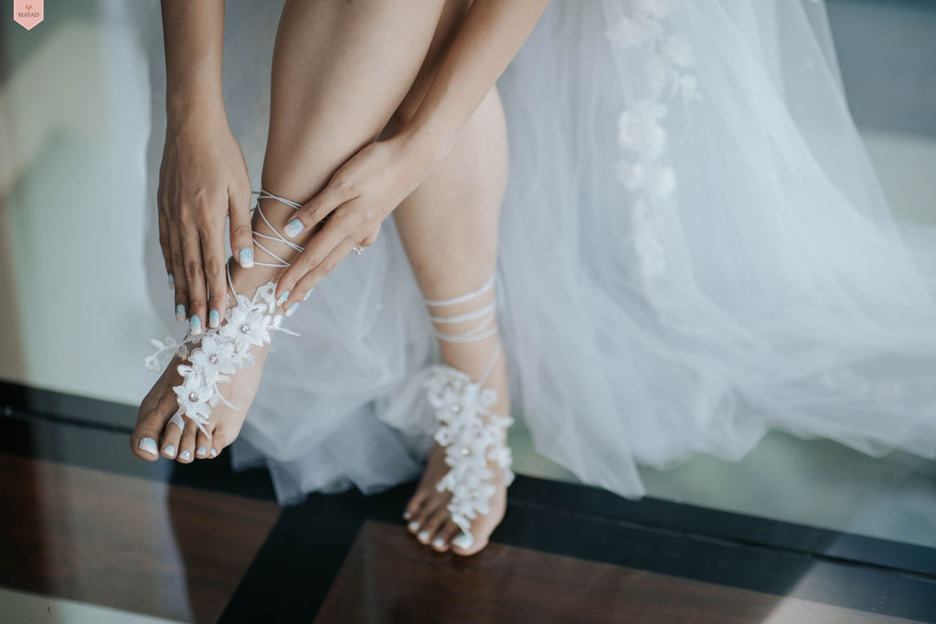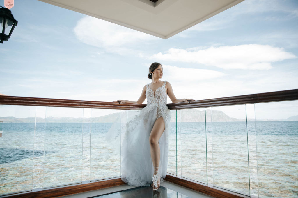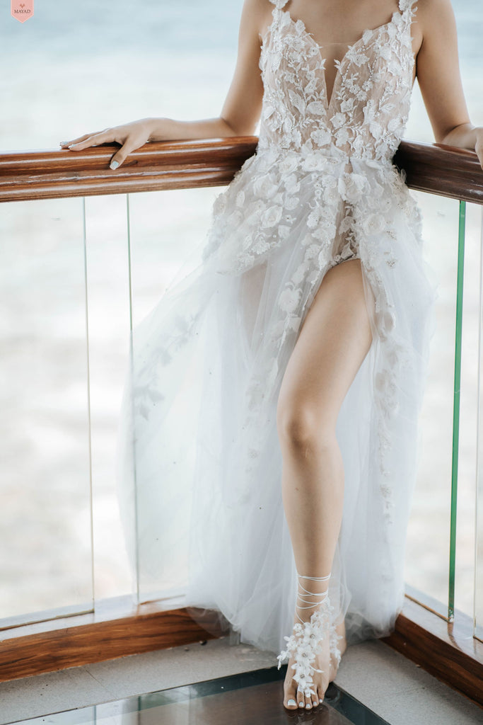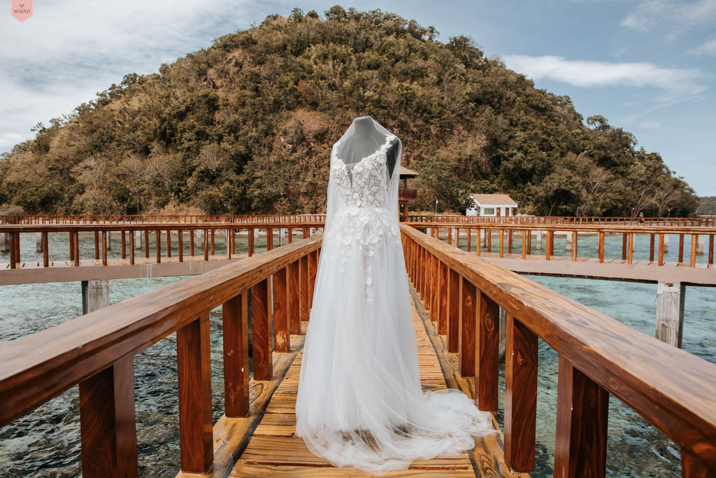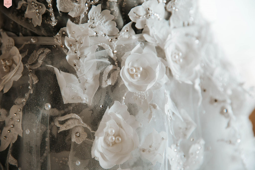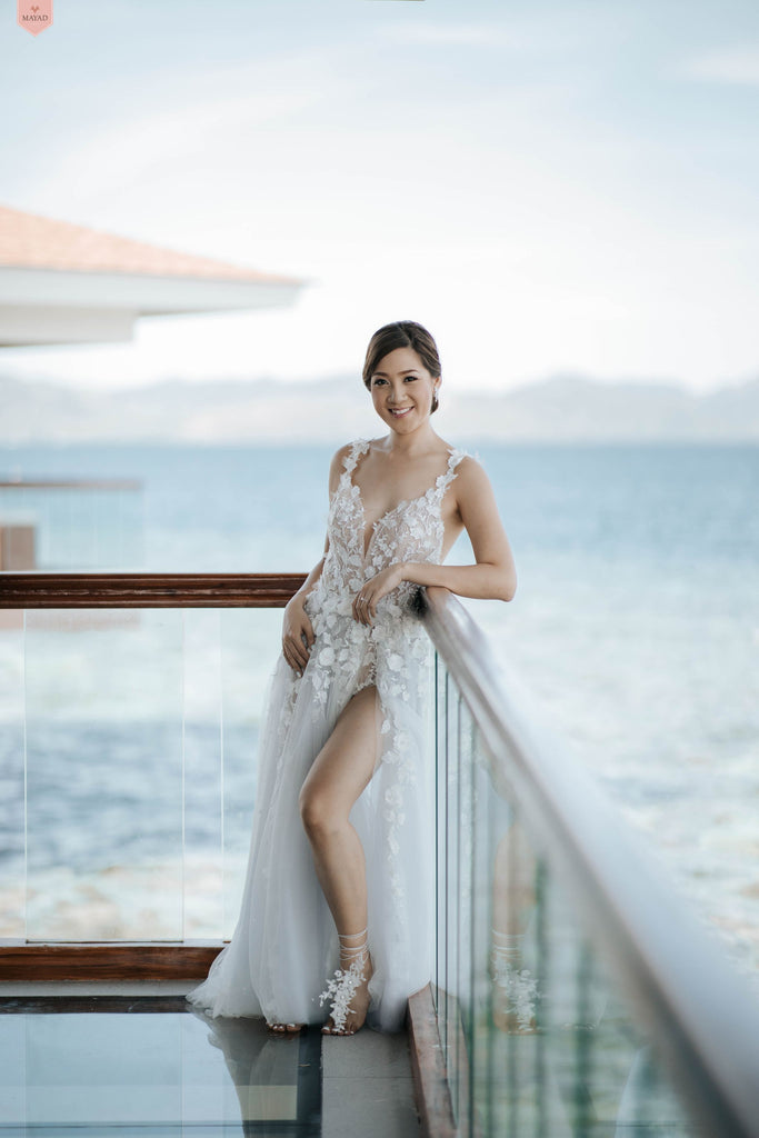 This dream gown of mine was custom made by one of the Philippine's top designers to the stars, Ms. Patricia Santos. She specializes in dreamy, ethereal gowns which was why I chose her as my designer. The design was inspired by Muse by Berta's Bella dress, customized to my preference. Best for outdoor weddings such as beach or garden. Unusual, contemporary, sexy, yet classy and dainty at the same time. Very light weight and airy! It's made of: