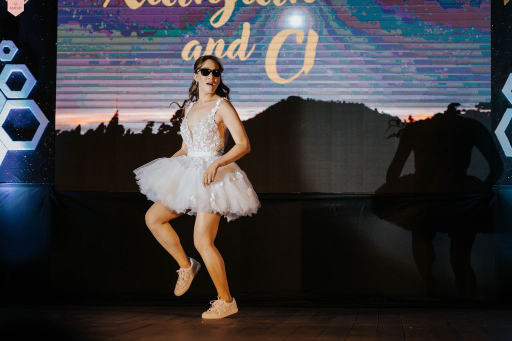 3. A detachable mini puffy tutu tulle skirt inspired by Giambattista Valli for use during reception, also lightly embellished with laces and crystals