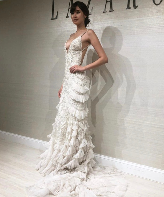 This is the start dress in Lazaro’s brand new Spring 2019 collection dress called Tatiana. I’m planning to wear this for my wedding on Labor Day weekend August 31, 2019. I’m hoping that this show stopper of a dress will get to go to another home after my wedding because it definitely deserves a 2nd owner.