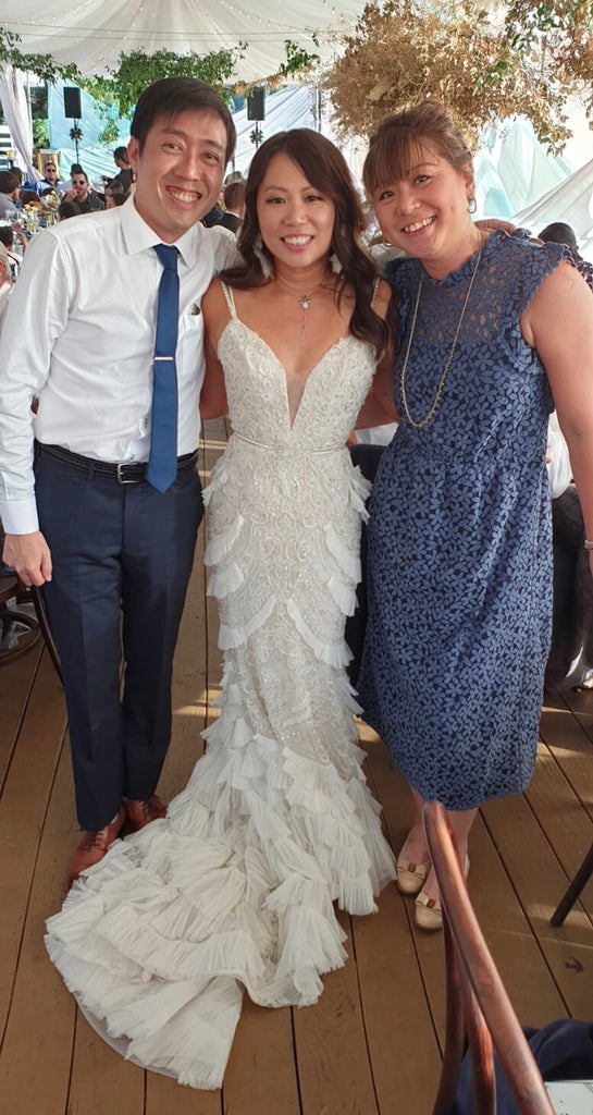There is subtle beading with pretty 3D silk organza flowers for added definition. The beadwork is out of this world gorgeous and intricate. As this is his couture range and one of the pricier dresses in his collection, no expense is spared. There is even a additional chantily lace layer under that shows through the front layer.
